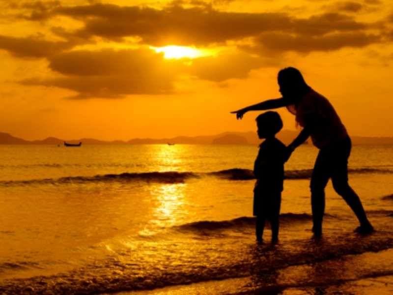 Batmak üzere olan güneş ufuk çizgisine dayanmış, gökyüzü turuncu ve kızıl tonlara ...